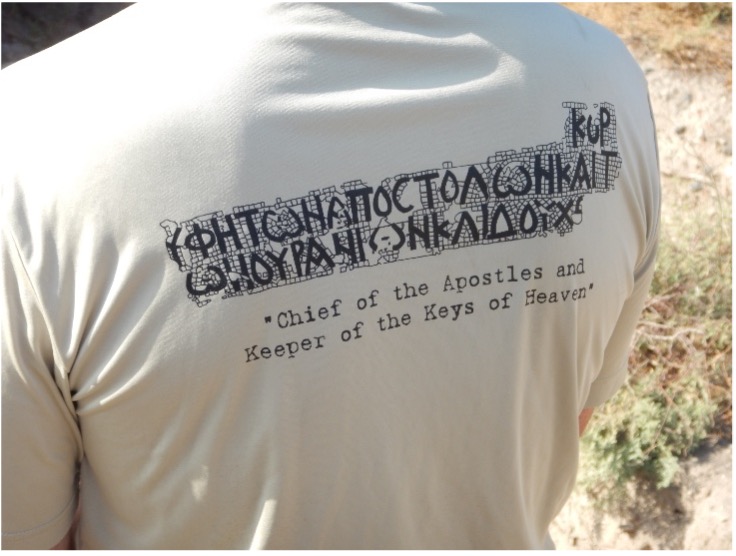 Ein T-Shirt zeigt einen Teil des in Bethsaida gefundenen Mosaiks.