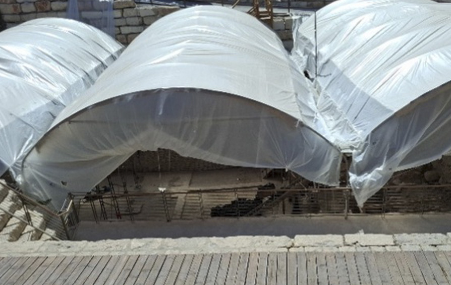Unter einem großen Zelt wird derzeit das große Becken des Teiches Siloah freigelegt.